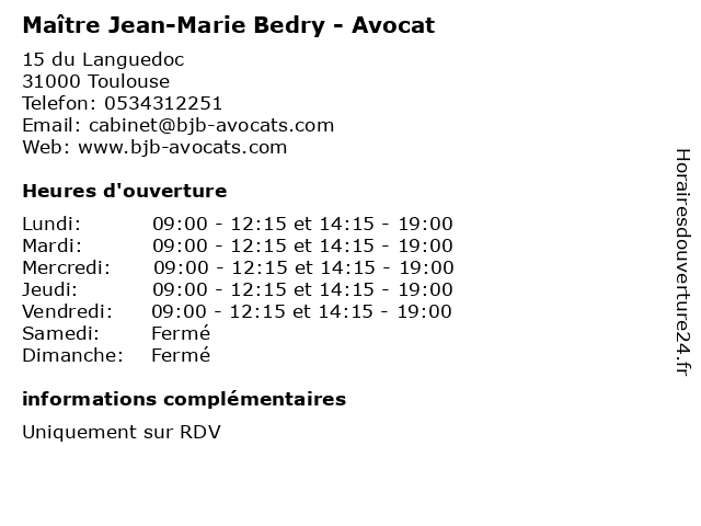 | Mardi | 09:00-12:15 et 14:15-19:00 |