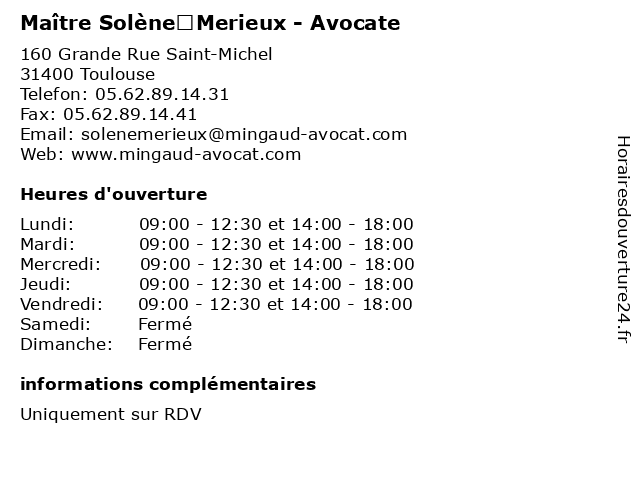 | Lundi | 09:00-12:30 et 14:00-18:00 |