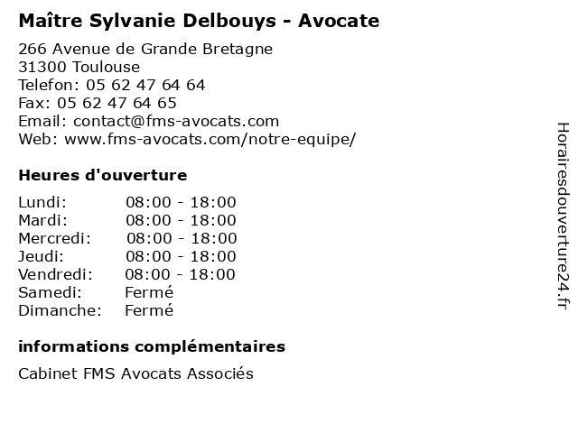 1 Société d'Avocats Inter Barreaux Firmas - Mamy - Sicard - Delbouys (Distance: 0,01 km) 266 Avenue de Grande Bretagne, 31300 Toulouse barreaux, d'avocats, delbouys, firmas, inter, mamy, sicard, société 2 Julien Delbouys - Ostéopathe (Distance: 39,98 km) 5065 route du Fau, 82000 Montauban bien-être, delbouys, julien, ostéopathe, santé, services 3 Maître Isabelle Sicard - Avocate (Distance: nan km) 266 Avenue de Grande Bretagne, 31300 Toulouse avocate, avocats, cabinet, conseils, contentieux, isabelle, juridique, justice, litiges, maître, services, sicard 4 Centre de vaccination international et de conseils aux voyageurs - Medecine Generale (secrétariat ) (Distance: 0,97 km) - Place du Docteur Joseph Baylac, 31059 Toulouse aux, centre, conseils, consultation, de, docteur, et, generale, international, medecine, santé, secrétariat, vaccination, voyageurs 5 Cabinet B Et Associes (Distance: 1,08 km) 2 Passage Jean Claude Godfrain, 31300 Toulouse associes, cabinet, et 6 Maître Sarah Haddad-Chollet - Avocate (Distance: 2,69 km) 10 bis rue Lakanal, 31000 Toulouse avocat, avocate, chollet, droit, haddad, juridictionnelle, maître, négociation, sarah, sarah haddad |