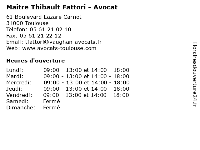 | Lundi | 09:00-13:00 et 14:00-18:00 |