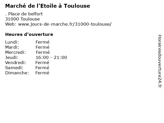 1 Etoile De La Soummam (Distance: 0,20 km) 11 b Rue De Bayard, 31000 Toulouse boucheries, etoile, poissonneries, soummam 2 Fromagerie Betty - Marché Victor Hugo (Distance: 0,29 km) . Place Victor Hugo, 31000 Toulouse betty, boutique, commerce, fromager, fromagerie, fromages, hugo, marché, vente, victor 3 Marché Forain à Toulouse (Distance: 0,30 km) . Boulevard de Strasbourg, 31000 Toulouse forain, frutas, hortalizas, marché, mercado, toulouse, verduras 4 Bar des Halles - Marché Victor Hugo (Distance: 0,30 km) - Place Victor Hugo, 31000 Toulouse bar, de la nourriture, des, des halls de foire, du poisson, fruits et légumes, halles, hugo, la viande, le poulet, marché, victor 5 Maison Beauhaire - Marché Victor Hugo (Distance: 0,30 km) - Place Victor Hugo, 31000 Toulouse beauhaire, forains, fruits, hugo, légumes, maison, marché, nourriture, poisson, poulet, viande, victor 6 Le mastroquet du marché (Distance: 0,34 km) 42 Boulevard de Strasbourg, 31000 Toulouse du, le, marché, mastroquet |