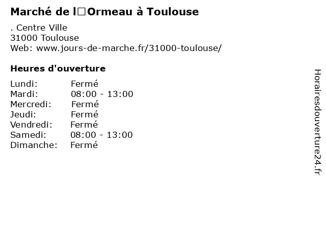 | Dimanche | Fermé |