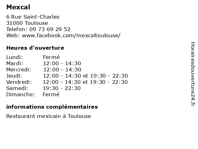 | Vendredi | 12:00-14:30 et 19:30-22:30 |