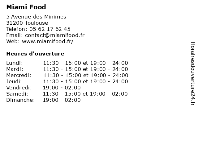 | Samedi | 11:30-15:00 et 19:00-02:00 |