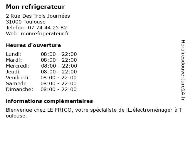 | Lundi | 08:00-22:00 |