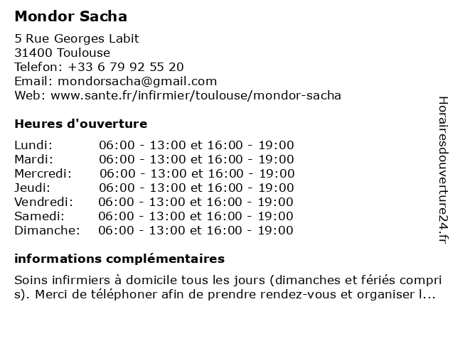 | Samedi | 06:00-13:00 et 16:00-19:00 |