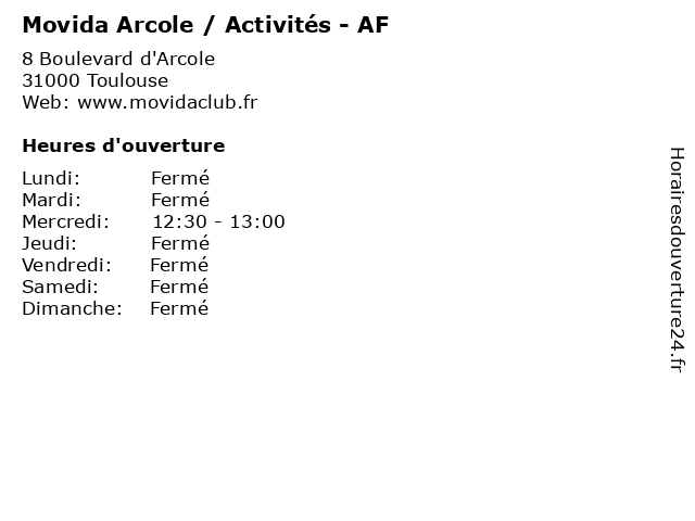 | Samedi | Fermé |