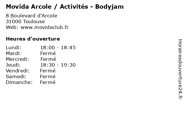 1 Movida Arcole / Activités - Caf (Distance: 0,00 km) 8 Boulevard d'Arcole, 31000 Toulouse activités, arcola, arcole, caf, exercise, fitness, health, movida, outdoor, physical activities, sports 2 Movida Arcole / Activités - Cx+Stretch (Distance: 0,00 km) 8 Boulevard d'Arcole, 31000 Toulouse activités, arcola, arcole, cx+stretch, exercise, fitness, health, movida, outdoor, physical activities, sports 3 Movida Arcole / Activités - Rpm (Distance: 0,00 km) 8 Boulevard d'Arcole, 31000 Toulouse activités, arcola, arcole, exercise, fitness, health, movida, outdoor, physical activities, rpm, sports 4 Movida Arcole / Activités - Bodybalance (Distance: 0,00 km) 8 Boulevard d'Arcole, 31000 Toulouse activités, arcola, arcole, bodybalance, exercise, fitness, health, movida, outdoor, physical activities, sports 5 Movida Arcole / Activités - Bodypump (Distance: 0,00 km) 8 Boulevard d'Arcole, 31000 Toulouse activités, arcola, arcole, bodypump, exercise, fitness, health, movida, outdoor, physical activities, sports 6 Movida Arcole / Activités - Bodyattack (Distance: 0,00 km) 8 Boulevard d'Arcole, 31000 Toulouse activités, arcola, arcole, bodyattack, exercise, fitness, health, movida, outdoor, physical activities, sports |