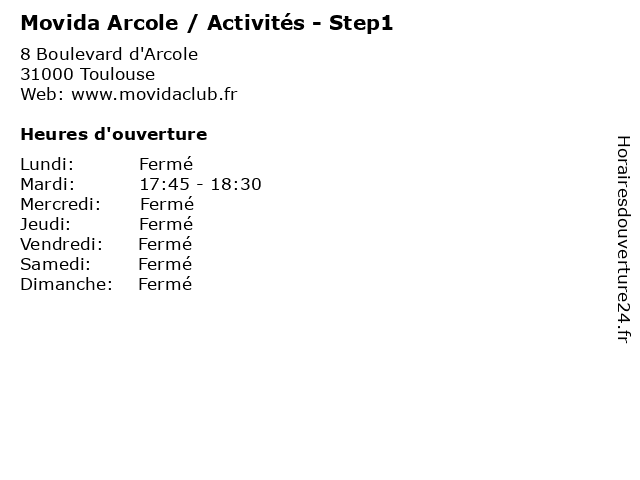 | Mardi | 17:45-18:30 |
