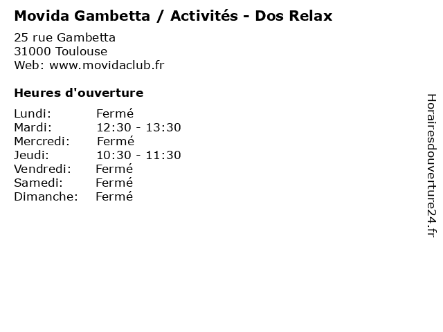 Termes de recherche pour Movida Gambetta / Activités - Dos Relax:fitness, gambetta, sports, movida, outdoor, relax, health, activités, exercise, dos, physical activities |