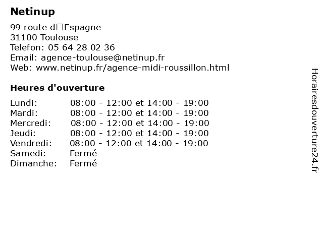 | Lundi | 08:00-12:00 et 14:00-19:00 |