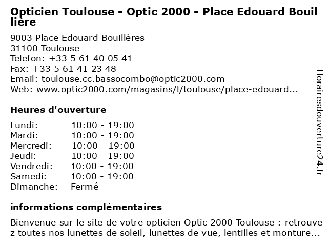 Termes de recherche pour Opticien Toulouse - Optic 2000 - Place Edouard Bouillière:toulouse, opticien, place, lunettes de soleil, optic2000, 2000, optic, lentilles de contact, edouard, lunettes de vue, opticien optic2000, ray-ban, rayban, bouillière |