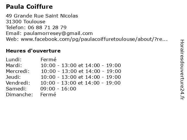 | Mardi | 10:00-13:00 et 14:00-19:00 |