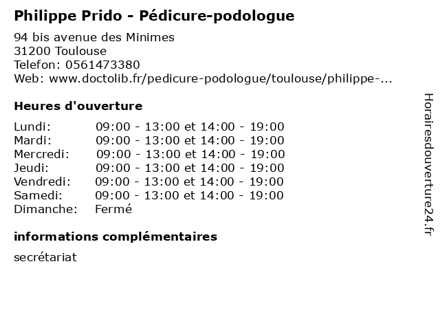 | Lundi | 09:00-13:00 et 14:00-19:00 |