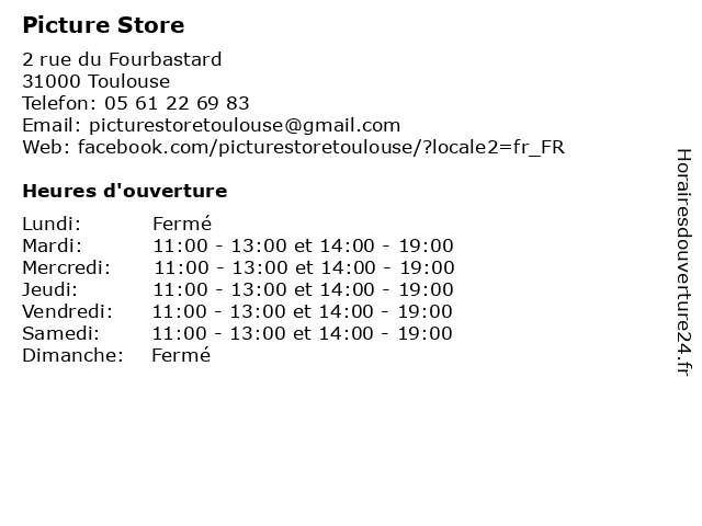 | Mercredi | 11:00-13:00 et 14:00-19:00 |