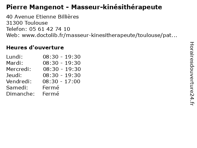| Jeudi | 08:30-19:30 |
