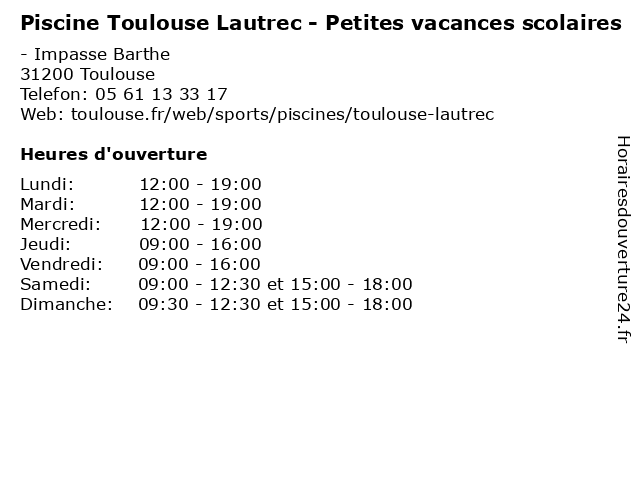 | Dimanche | 09:30-12:30 et 15:00-18:00 |