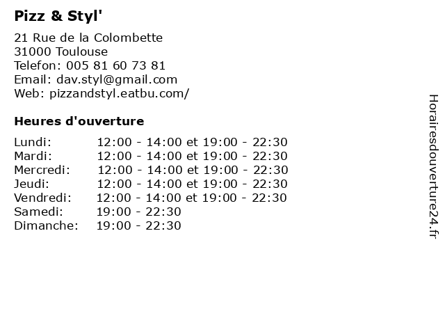 | Vendredi | 12:00-14:00 et 19:00-22:30 |
