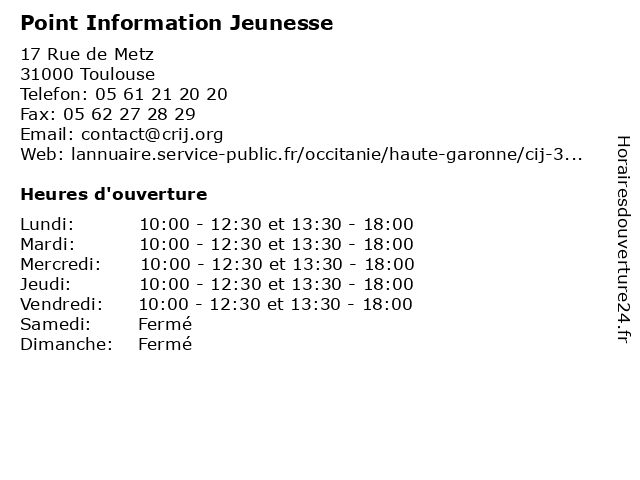 | Mercredi | 10:00-12:30 et 13:30-18:00 |