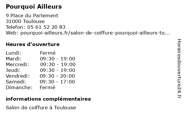 1 Pourquoi Ailleurs (Distance: 10,27 km) 38 bis Place de l’Eglise, 31270 Cugnaux ailleurs, beauté, coiffure, coiffures, coloristes, pourquoi 2 Pourquoi Ailleurs (Distance: 13,34 km) 39 rue Principale, 31820 Pibrac ailleurs, beauté, coiffure, coiffures, coloristes, pourquoi 3 Beauté D'Ailleurs (Distance: 0,36 km) 151 Grande Rue Saint-Michel, 31400 Toulouse beauté, coiffure, coiffures, coloristes, d'ailleurs 4 Le Pourquoi Pas (Distance: 1,01 km) 18 b Rue Achille Viadieu Et 1, 31400 Toulouse correia, manuel, pas, pourquoi, restaurants, rodrigues 5 Envie d'Ailleurs (Distance: 3,27 km) 8 Rue Louis Courtois de Viçose, 31100 Toulouse bien-etre, d'ailleurs, envie, massages, relaxation, santé, spa, thérapies 6 Aux Delices d Ailleurs (Distance: 5,87 km) 2 Rue Paul Rocache, 31100 Toulouse ailleurs, aux, delices, restaurants |