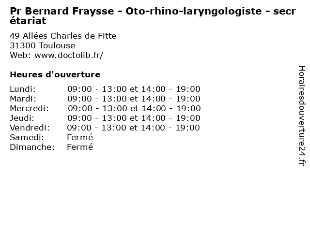 | Lundi | 09:00-13:00 et 14:00-19:00 |