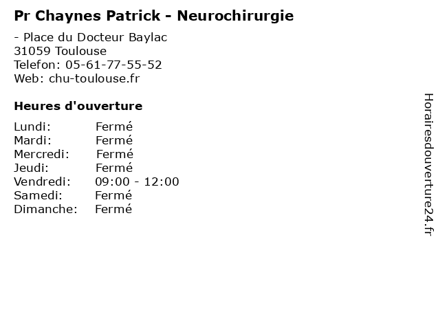 Termes de recherche pour Pr Chaynes Patrick - Neurochirurgie:patrick, hopital, medecine, docteur, pr, neurochirurgie, chaynes |
