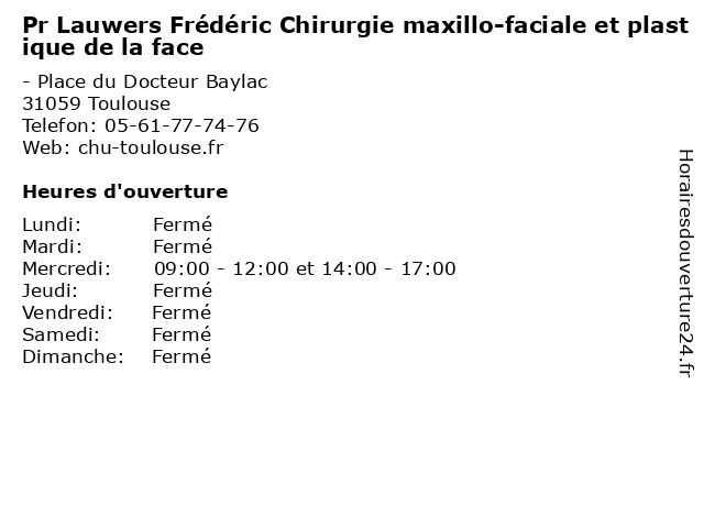 | Mercredi | 09:00-12:00 et 14:00-17:00 |