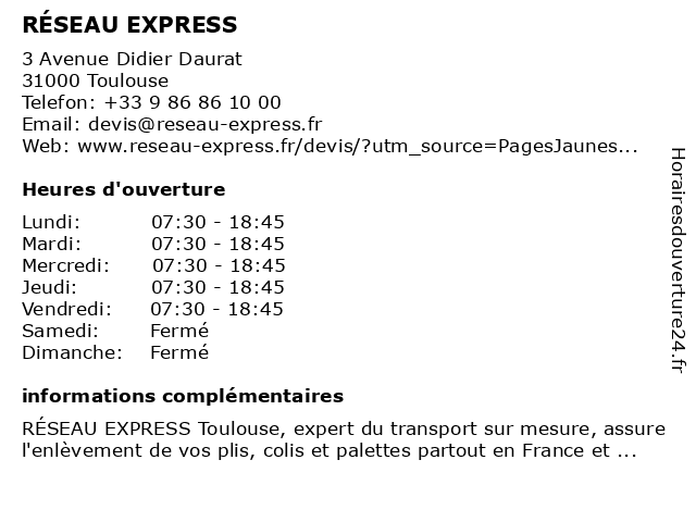 | Mercredi | 07:30-18:45 |