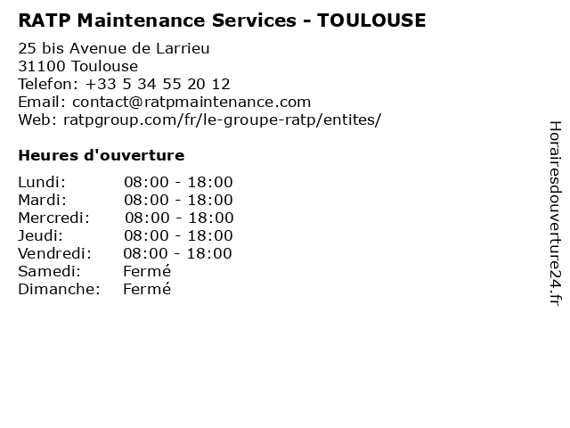 Termes de recherche pour RATP Maintenance Services - TOULOUSE:toulouse, dépannage, services, ratp, maintenance, installation, sécurisation, élévateurs, b2b, accessibilite, ascenseurs, mise en conformité, escaliers mécaniques, trottoirs roulants, escalators |