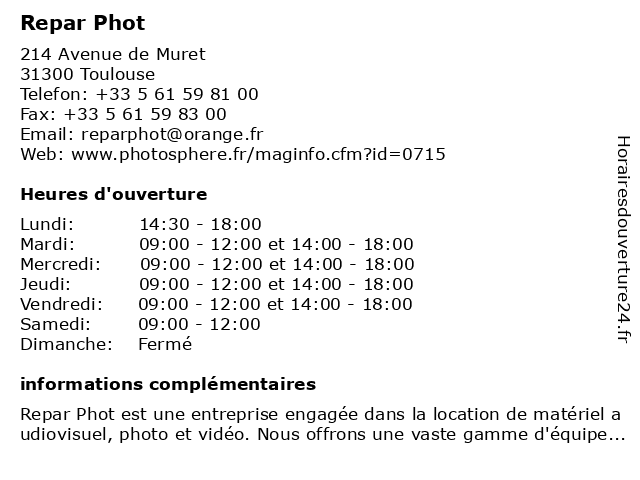 | Mardi | 09:00-12:00 et 14:00-18:00 |