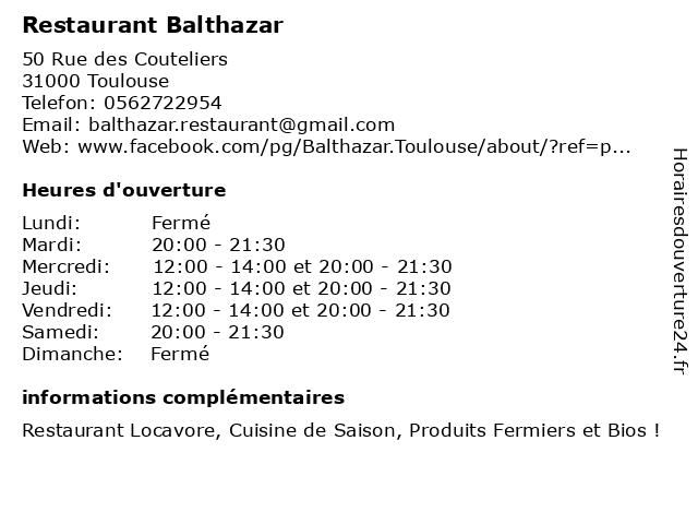 | Termes de recherche pour Restaurant Balthazar:restauration, restaurant, café, bar, bistrot, brasserie, balthazar, bistro |
