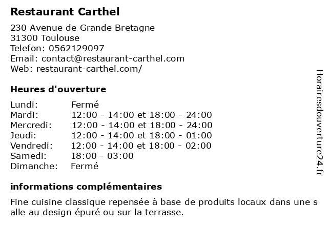 | Mardi | 12:00-14:00 et 18:00-24:00 |