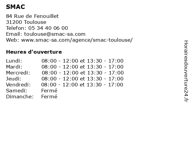 | Lundi | 08:00-12:00 et 13:30-17:00 |