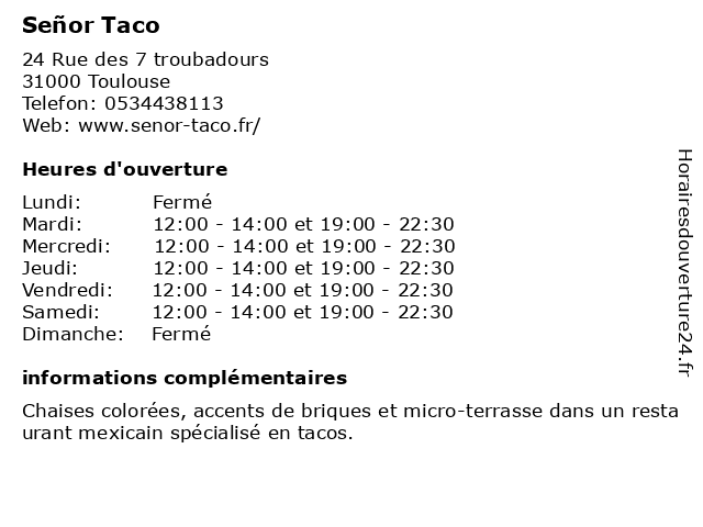| Mardi | 12:00-14:00 et 19:00-22:30 |