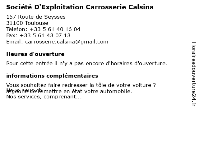 | Appeler Société D'Exploitation Carrosserie Calsina | |