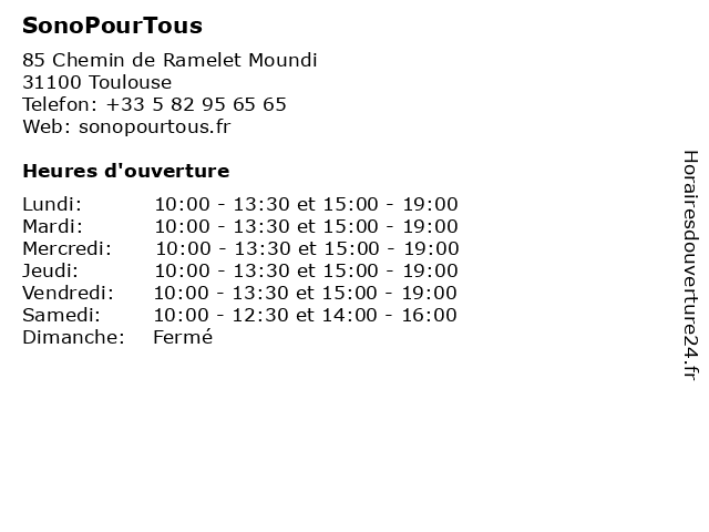 | Lundi | 10:00-13:30 et 15:00-19:00 |