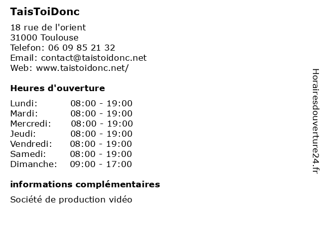 | Lundi | 08:00-19:00 |