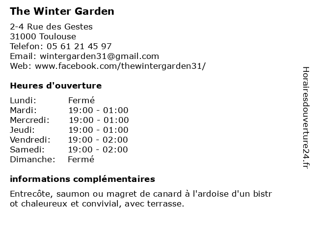 Termes de recherche pour The Winter Garden:restauration, restaurant, café, bar, the, bistrot, brasserie, pub, garden, resto, bistro, winter  |