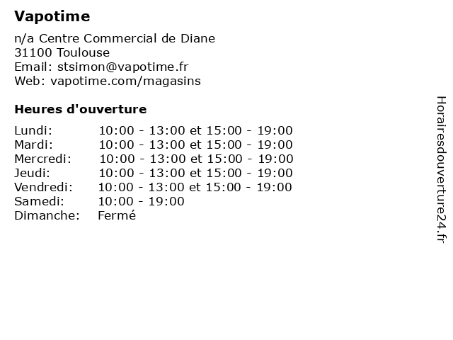 | Vendredi | 10:00-13:00 et 15:00-19:00 |