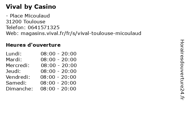 | 1 Vival by Casino (Distance: 2,18 km) 39 Rue de Negreneys, 31200 Toulouse by, casino, droguerie, d’hypermarchés, frais, fruits et légumes, hygiène, parfumerie et autres produits non alimentaires., surgelés, vival, épicerie 2 Vival by Casino (Distance: 3,75 km) 79 Rue Pargaminières, 31000 Toulouse by, casino, droguerie, d’hypermarchés, frais, fruits et légumes, hygiène, parfumerie et autres produits non alimentaires., surgelés, vival, épicerie 3 Vival by Casino (Distance: 4,04 km) 11 Rue des Blanchers, 31000 Toulouse by, casino, droguerie, d’hypermarchés, frais, fruits et légumes, hygiène, parfumerie et autres produits non alimentaires., surgelés, vival, épicerie 4 Vival by Casino (Distance: 4,60 km) 7 Place Diebold, 31300 Toulouse by, casino, droguerie, d’hypermarchés, frais, fruits et légumes, hygiène, parfumerie et autres produits non alimentaires., surgelés, vival, épicerie 5 Vival by Casino (Distance: 6,15 km) 122 Avenue de Muret, 31323 Muret by, casino, droguerie, d’hypermarchés, frais, fruits et légumes, hygiène, parfumerie et autres produits non alimentaires., surgelés, vival, épicerie 6 Vival by Casino (Distance: 14,51 km) - Centre Commercial, 31650 AUZIELLE by, casino, droguerie, d’hypermarchés, frais, fruits et légumes, hygiène, parfumerie et autres produits non alimentaires., surgelés, vival, épicerie |