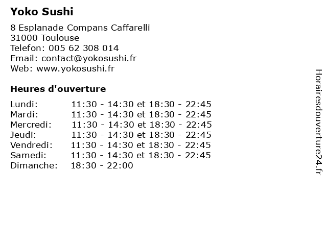 | Lundi | 11:30-14:30 et 18:30-22:45 |