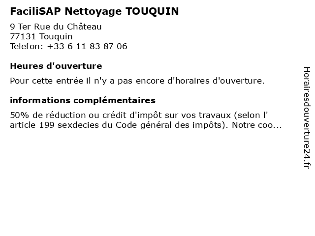 | Appeler FaciliSAP Nettoyage TOUQUIN | |