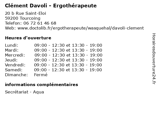| Mercredi | 09:00-12:30 et 13:30-19:00 |