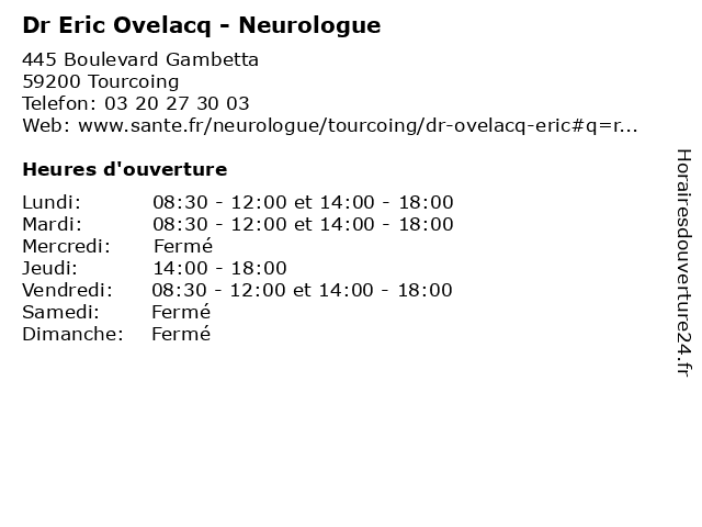 2 Dr Edithe Sobtejou - Neurologue (Distance: 1,20 km) 19 Rue des Écoles, 59100 Roubaix dr, edithe, médecin, médecine, médical, neurologue, pharmaceutique, secretariat, sobtejou, traitement 3 Dr Eric Boez - Pédiatre (Distance: 1,30 km) 36 rue du Nouveau Monde, 59100 Roubaix boez, consultation, docteur, dr, eric, med, médecin, médecine, pédiatre, traitement 4 Dr. Eric Carlier - Médecine générale (Consultation sur rendez-vous) (Distance: 2,07 km) 102 Boulevard Montesquieu,, 59100 Roubaix carlier, consultation, docteur, dr., eric, générale, medecins, médecine, rendez, santé, sur, vous 5 Dr Eric Leon - Médecin généraliste (Distance: 2,08 km) 10 Rue Thiers, 59420 Mouvaux docteur, dr, eric, generaliste, généraliste, leon, medical, médecin, soin 6 Maître Eric Kuchcinski - Avocat (Distance: 2,12 km) 8 Boulevard du Général de Gaulle, 59100 Roubaix avocat, avocats, civils, droits, eric, juridiques, kuchcinski, maître |