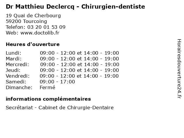 | Mardi | 09:00-12:00 et 14:00-19:00 |