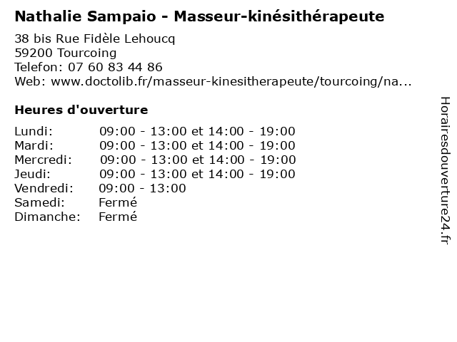 | Lundi | 09:00-13:00 et 14:00-19:00 |
