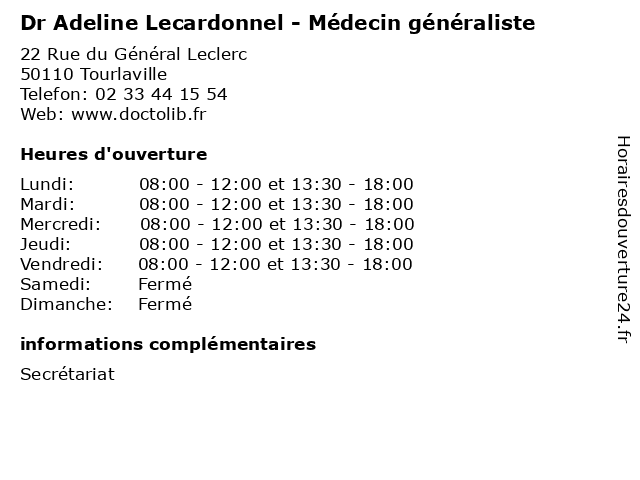 | Lundi | 08:00-12:00 et 13:30-18:00 |