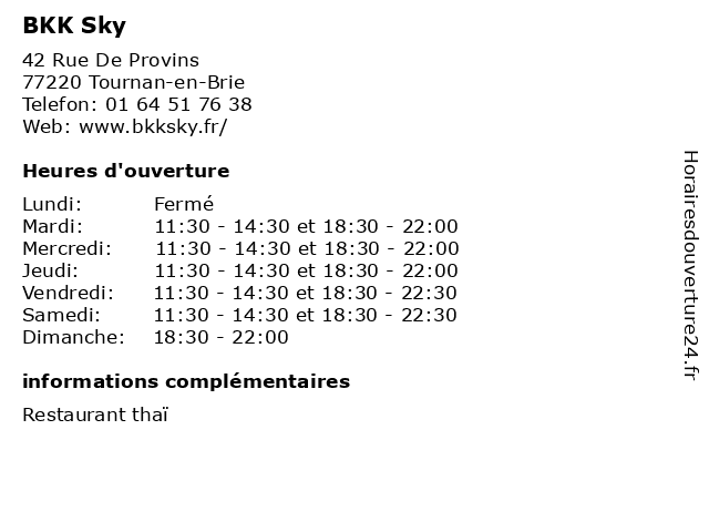 2 Asian Sky (Distance: 7,81 km) 93 Avenue du Général de Gaulle, 77330 Ozoir-la-Ferrière asian, bar, bistro, bistrot, brasserie, café, restaurant, restauration, sky 4 BKK Sky - Thaï food restaurant (Distance: 19,57 km) 44 avenue François Mitterrand, 77500 Chelles asiatique, bkk, food, menus, plats, restaurant, restauration, sky, thaï 6 BKK Sky - Thaï food restaurant (Distance: 26,90 km) 23 avenue Jean-Baptiste Clément, 77290 Mitry-Mory asiatique, bkk, food, menus, plats, restaurant, restauration, sky, thaï |