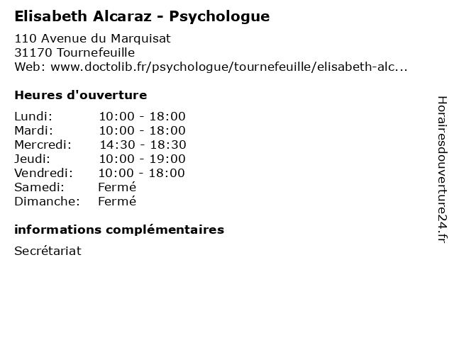 1 Elisabeth Lacoste - Naturopathe (Distance: 2,55 km) 125 Chemin de Ramelet Moundi, 31100 Toulouse elisabeth, lacoste, medecin, naturopathe, plante, sante 3 Maître Elisabeth Santalucia - Avocate (Distance: 3,79 km) 18 place de l'Aveyron, 31770 Colomiers avocat, avocate, droit, elisabeth, juridictionnelle, maître, négociation, santalucia 4 Elisabeth Le - Psychologue (Distance: 3,89 km) 8 Avenue Montaigne, 31830 Plaisance-du-Touch elisabeth, le, psy, psychiatre, psychologue, sante, soins 5 Elisabeth Dudo - Psychologue (Distance: 4,03 km) 93 Rue Gilet, 31770 Colomiers dudo, elisabeth, psy, psychiatre, psychologue, sante, soins 6 Dr Elisabeth Roulland - Biologiste (Distance: 5,91 km) 45 avenue de Lombez, 31076 Toulouse analyse, biochimie, biochismiste, biologie, biologiste, clinique, dr, elisabeth, pasteur, roulland, toulouse |