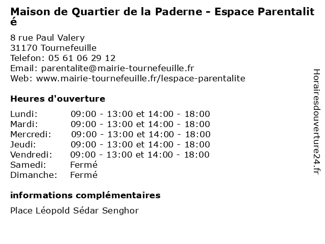 | Mardi | 09:00-13:00 et 14:00-18:00 |